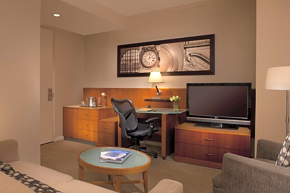 This suite, with city views, has a separate seating area, sofa bed, flat-screen cable TV and mini-bar.