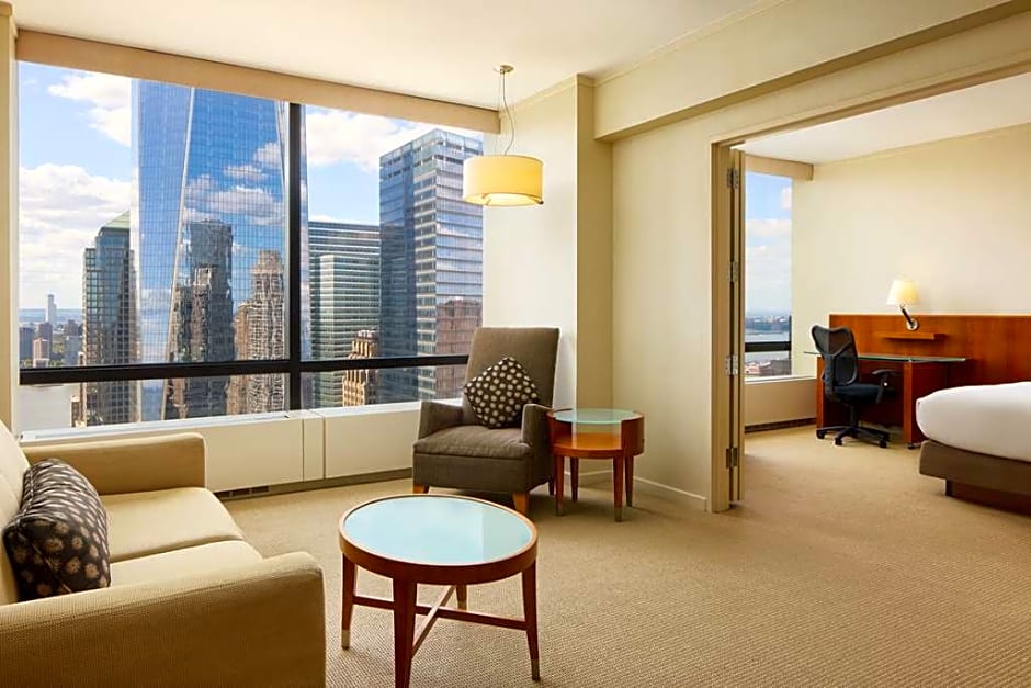 This suite, with views of the Hudson River, features a separate seating area, sofa bed, a flat-screen TV, and a mini-bar.